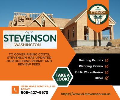 In an effort to cover rising costs, the City of Stevenson has updated our Building Permit and Review Fees. The new fess will begin August 1, 2023. See Resolution 2023-415, attached to this notification, for details.